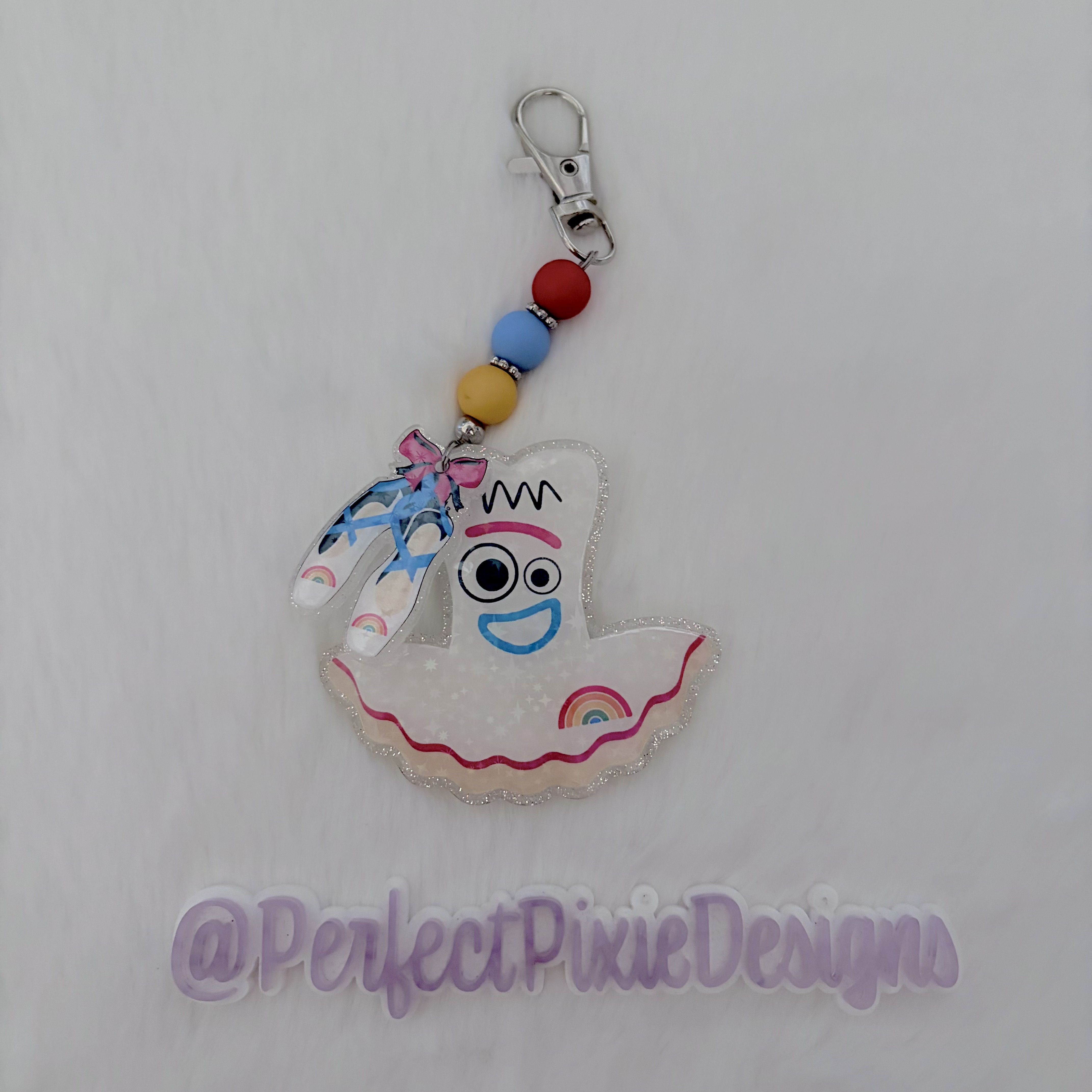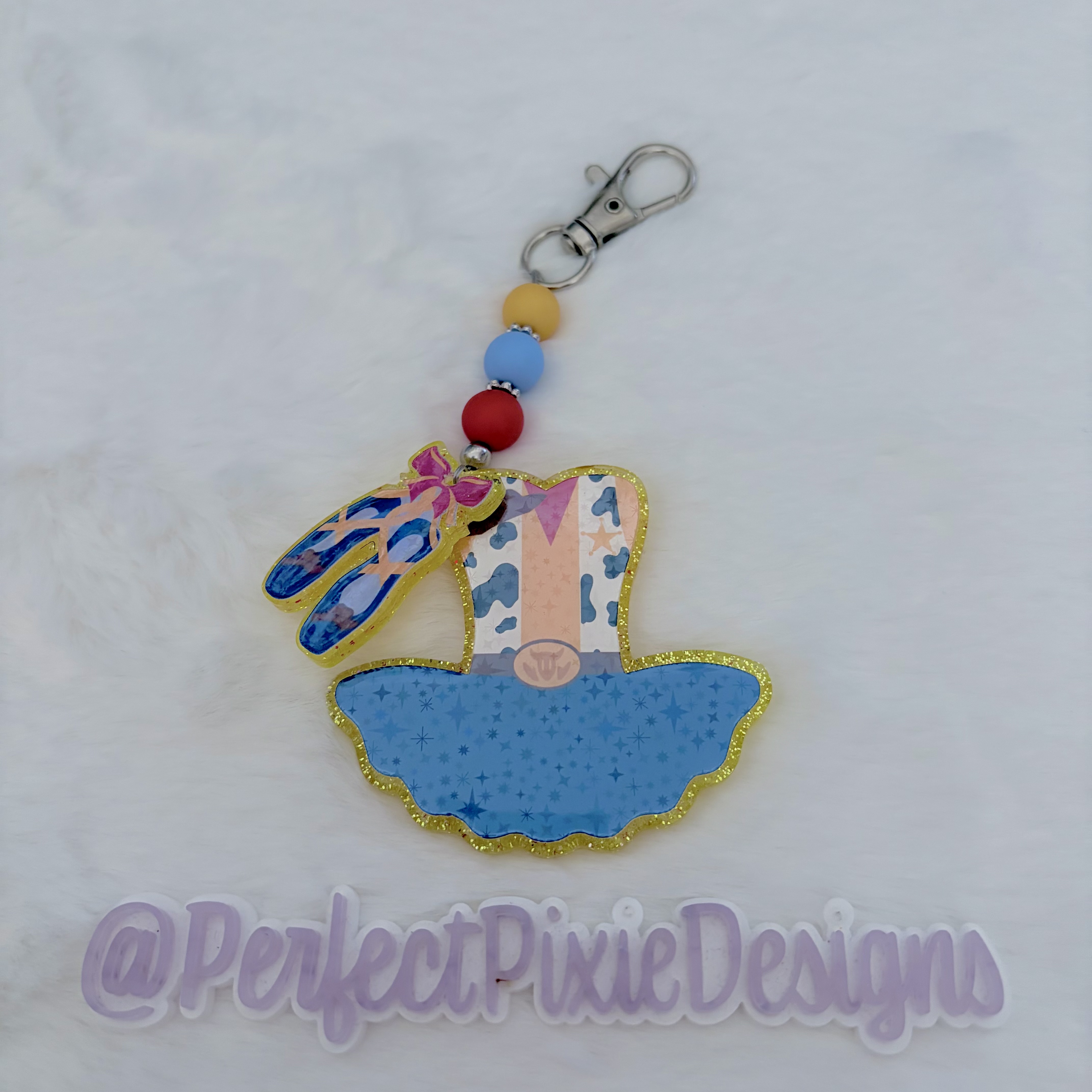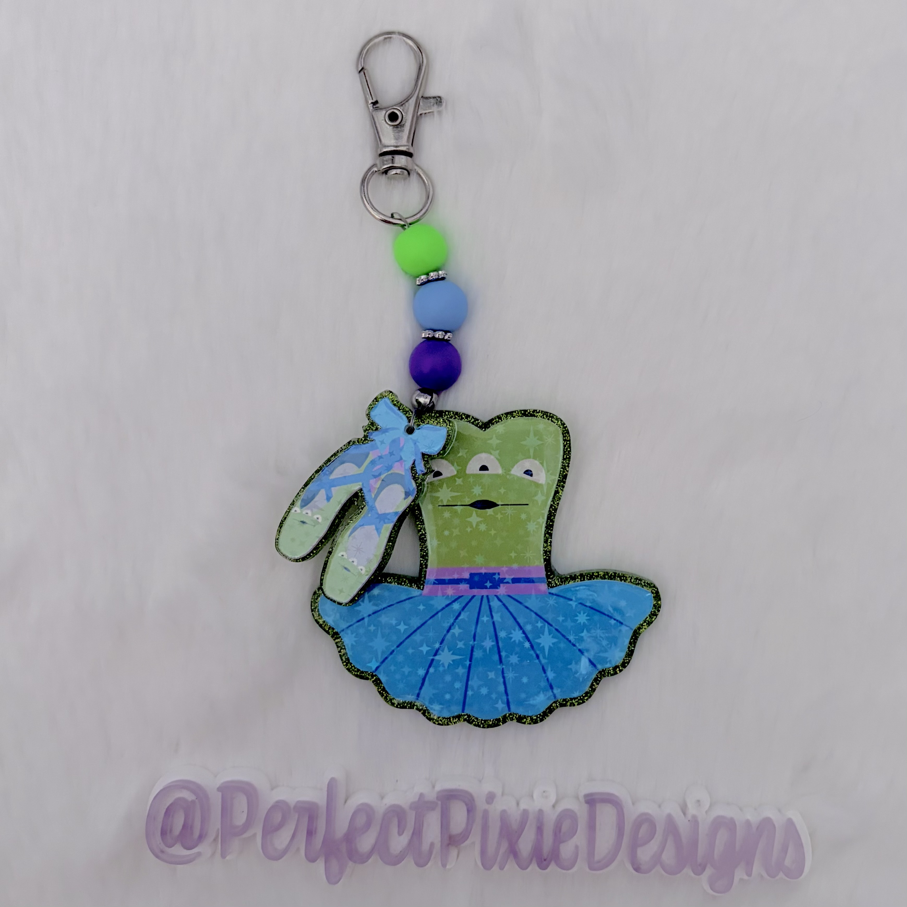 Tutu bag charms of all Andy's favorite toys. 3" keychain with clasp and split ring (not shown in photos but is added)