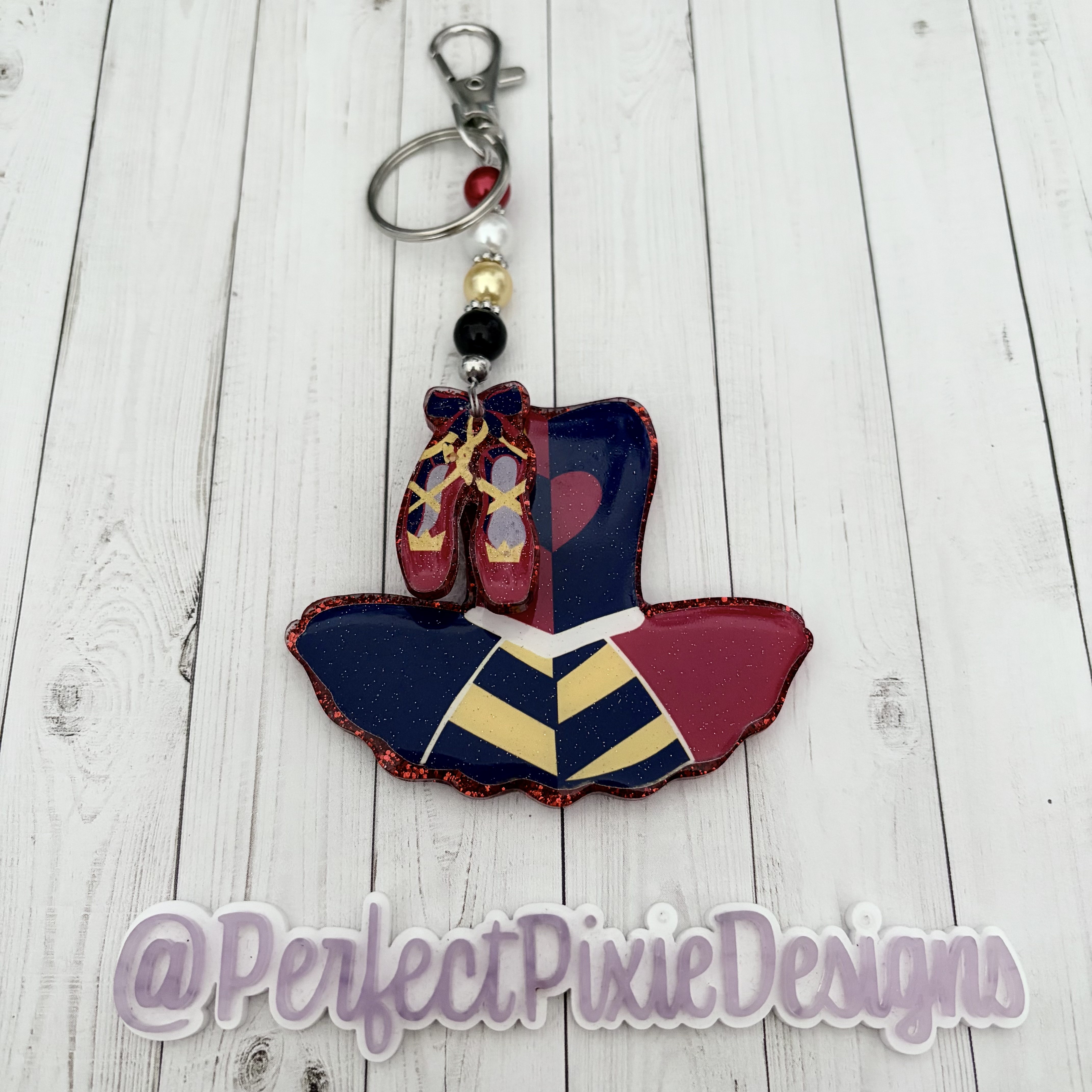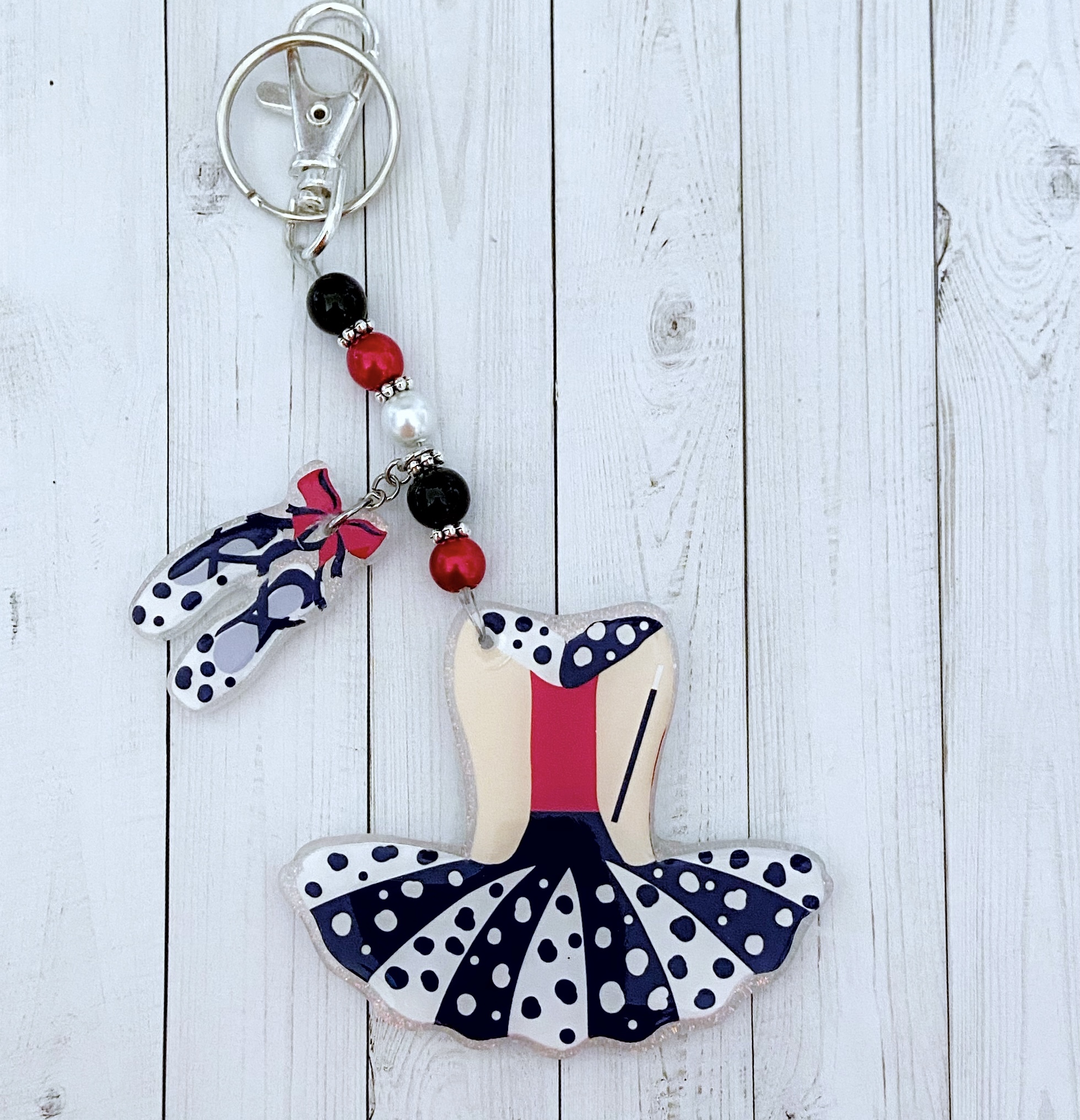 All ballet bag charms come with matching pointe shoe dangle. If I have a coordinating silver charm in stock, I'll add it. charms feature matching beaded accents and charms. They can be clipped to dance bags or purses. They are also popular as rear view mirror charms as well.